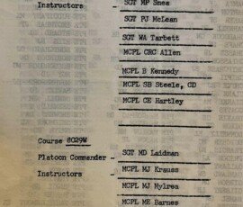 Recollections are not as strong as I wished, but some of the staff were Sgt King, WO Churchill, MCpl Dogget(spelling?), and MCpl Seguin.