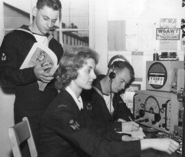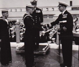 Seaman Communication Information System Megan O’Donohue sends a visual signal by morse code, with the use of a ten inch Signal Lamp, onboard HMAS TOBRUK, during the ships South East Asian and South West Pacific Deployment 2006.